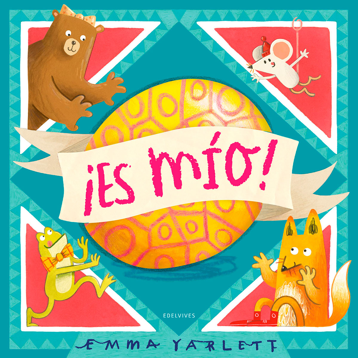 ​​​​​​¡Es mío! propone a la vez un divertido juego y un enigma. A través de troqueles y una retahíla, los pequeños descubren qué es el misterioso objeto ovalado que todos los animales desean… ¡pero que ninguno logra retener!