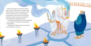 El dios Poseidón, ofendido con el rey Minos por no ser capaz de reconocer la ayuda que le prestó al vencer a sus enemigos, lo castiga condenando a su esposa a dar a luz a un niño monstruoso, con cuerpo de hombre y cabeza de toro. Con los años, el Minotauro se vuelve peligroso y, para evitar que ataque a los habitantes de la ciudad, es encerrado en un laberinto.