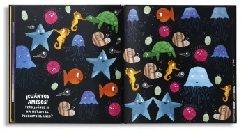 El pececito blanco ha aprendido un montón de cosas: conoce los colores, sabe contar hasta diez, distingue lo que es arriba y abajo, delante y detrás… Sabe, también, lo que se les da bien a todos los papás y las mamás del mar, y distingue cómo se siente en diferentes ocasiones.
