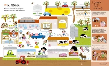 Una completa exposición sobre los distintos tipos de granjas: la variedad de animales que viven en ellas (cómo se comportan y qué aportan) y los diferentes cultivos que podemos encontrar en sus campos. Además se ofrece información sobre la elaboración de productos (el queso, la lana…) y el cultivo del campo.